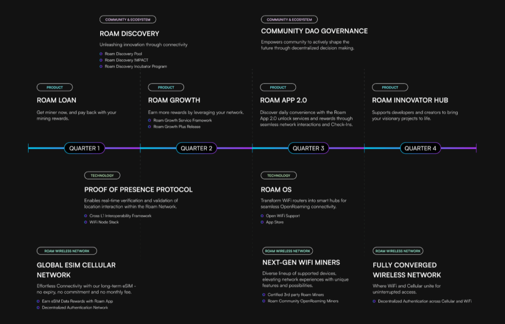 Roam, küresel, sorunsuz ve güvenli Wi-Fi erişimi sağlamak için blokzinciri teknolojisini kullanan, Merkeziyetsiz Fiziksel Altyapı Ağı (DePIN) projesidir. OpenRoaming standardının merkeziyetsiz bir uygulamasını sunar.