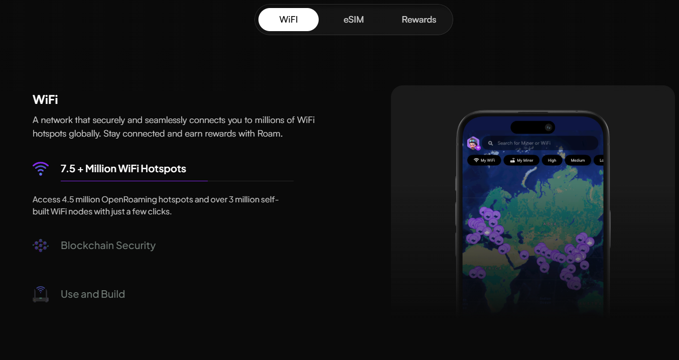 Roam’un temel özellikleri, küresel, merkeziyetsiz ve güvenli bir Wi-Fi deneyimi sunmaya odaklanır:
