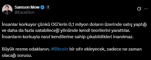 “İnsanlar kendi teorilerini oluşturup OG’lerin satış yaptığına inanıyor. Bu tamamen gereksiz bir korku. Büyük resme odaklanın. Bitcoin bir sıfır daha ekleyecek, mesele sadece ne zaman olacağı.”