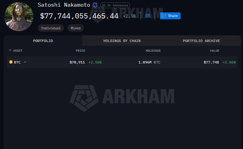 Blok zinciri analizlerine göre Satoshi Nakamoto’ya ait olduğu düşünülen cüzdanlarda yaklaşık 1,1 milyon Bitcoin bulunuyor. Bu varlıklar, uzun yıllardır hiç hareket etmemesi nedeniyle kripto para tarihinin en dikkat çekici servetlerinden biri olarak kabul ediliyor. Mevcut piyasa fiyatlarıyla yaklaşık 77 milyar dolar seviyesinde değerlendirilen bu Bitcoin rezervi, Satoshi’yi yalnızca kripto ekosisteminin değil, küresel finans dünyasının da en büyük servet sahiplerinden biri konumuna taşıyor.