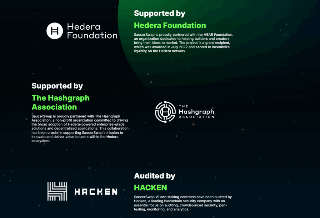 • HBAR Vakfı Desteği: SaucerSwap, 20 milyon HBAR hibesi ile uzun vadeli gelişim ve sürdürülebilirlik desteği almıştır.