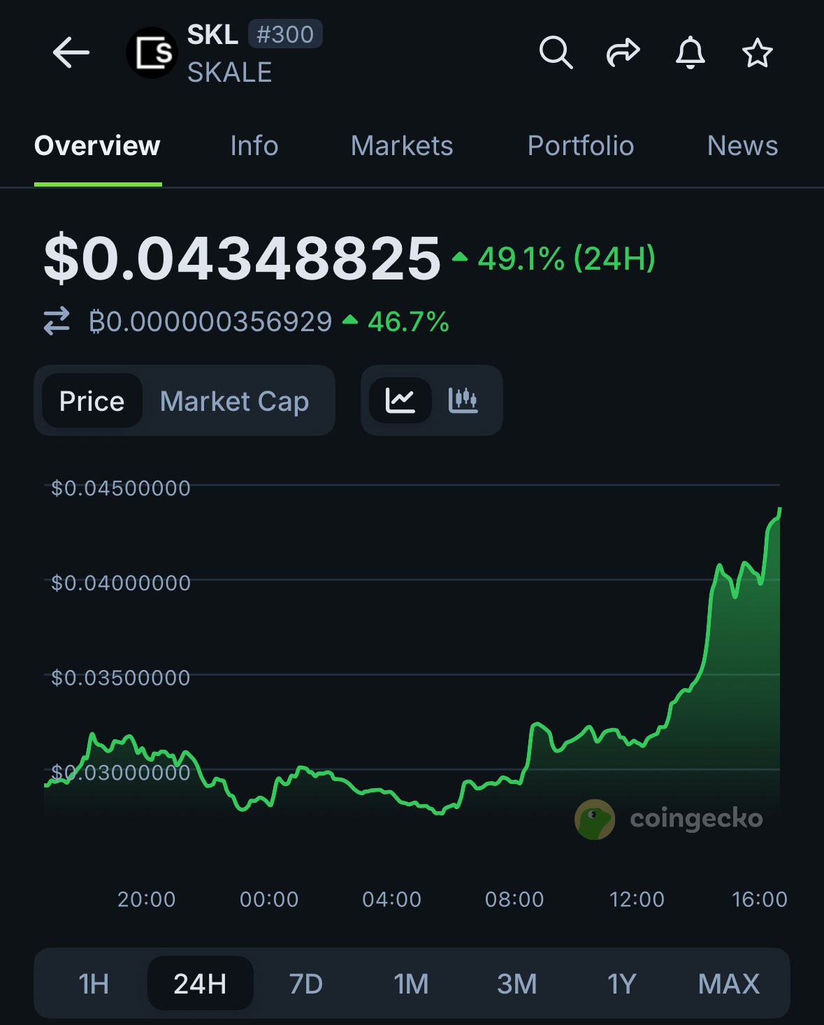 It Remains projesinin SKALE Network ile entegrasyon duyurusunun ardından, Skale (SKL) fiyatı bugün sert bir yükseliş kaydederek %49,1 artışla 0,04 dolar seviyesine ulaştı. Yüksek profilli bu iş birliği, SKALE’nin blokzincir altyapısının büyük ölçekli projelerde benimsenmesini hızlandırırken, yatırımcı ilgisini de önemli ölçüde artırdı. Piyasada oluşan bu güçlü talep, kısa vadede SKL fiyatının yukarı yönlü momentumunu desteklemeye devam ediyor.