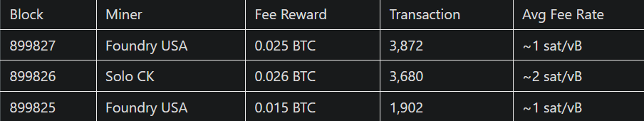 Benzer şekilde, 10 Şubat’ta tek bir Bitcoin madencisi 883.181 numaralı bloğu başarılı bir şekilde kazdı ve o dönem değeri 300.000 doların üzerinde olan, ücretler dahil toplam 3,15 BTC ödül elde etti. Mempool.space verilerine göre, bu blok 3.071 işlem barındırıyordu.