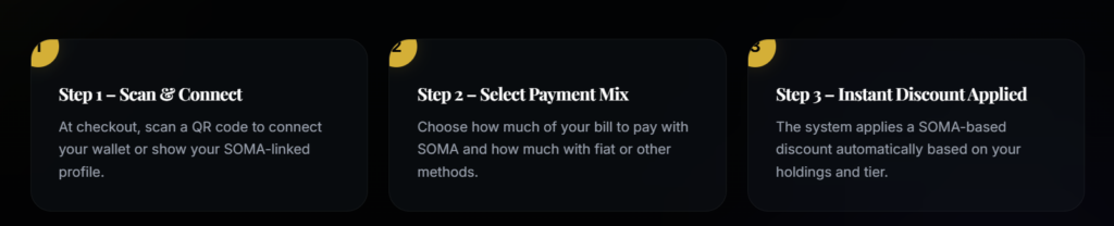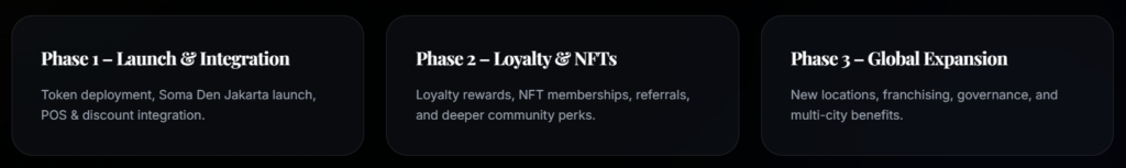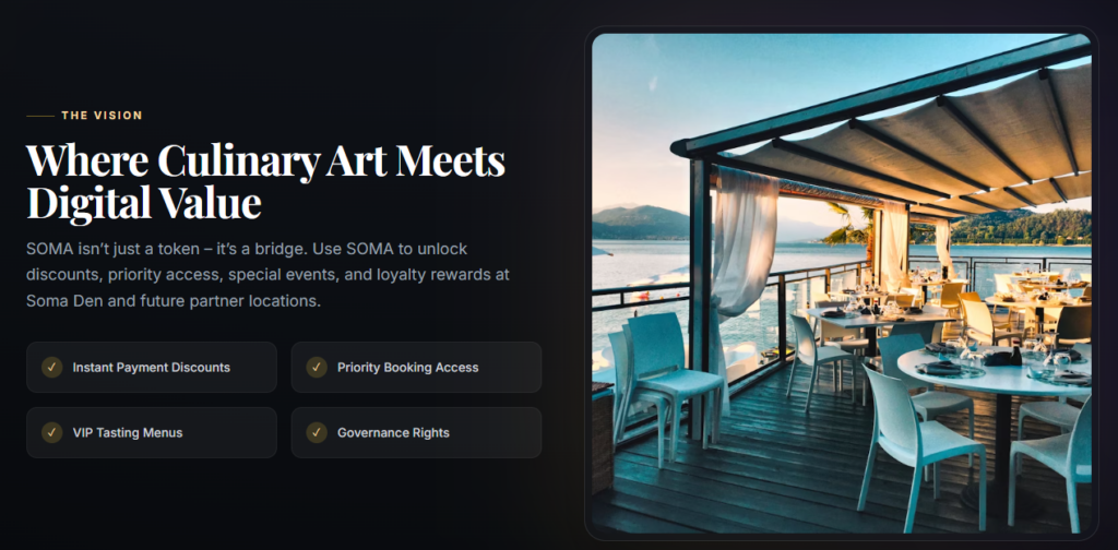 SOMA spekülatif bir varlık olarak değil, doğrudan restoran deneyimini geliştiren bir kullanım tokenı olarak tasarlanmıştır.