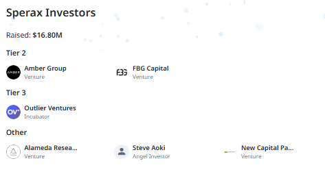 Sperax ekibi, blockchain mühendisliği, ekonomi ve operasyon alanlarında deneyimli isimlerden oluşmaktadır. Proje, bugüne kadar 16,8 milyon dolar fon toplamış ve farklı yatırımcı profillerinden destek almıştır.