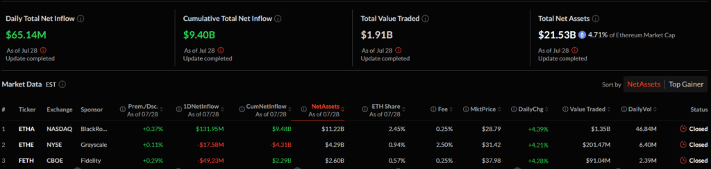 Spot Bitcoin ve Ethereum ETF’lerine 28 Temmuz’da gerçekleşen girişler, kurumsal yatırımcı ilgisinin hız kesmeden devam ettiğini gösterdi. Özellikle IBIT, dikkat çekici performansıyla zirvede yer aldı.