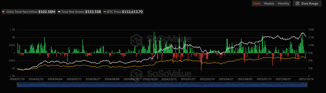 Haftanın ilk işlem gününde spot Bitcoin ETF’leri 102,58 milyon dolarlık net giriş kaydederek yatırımcı ilgisinin yeniden arttığını gösterdi. Özellikle Fidelity’nin spot Bitcoin ETF’si (FBTC), 133 milyon dolarlık tek günlük girişle piyasanın en dikkat çekici hareketini gerçekleştirdi.