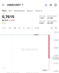 14 milyar dolarlık piyasa değeriyle kripto para piyasasının en büyük stablecoinlerinden biri olan USDE, küresel piyasalarda yaşanan sert dalgalanmalar sırasında 1 dolara olan sabitini (peg) kaybetti. Olay, ABD Başkanı Donald Trump’ın Çin’e karşı %100 gümrük vergisi uygulayacağını açıklamasının hemen ardından gerçekleşti ve kripto piyasasında büyük bir panik yarattı.