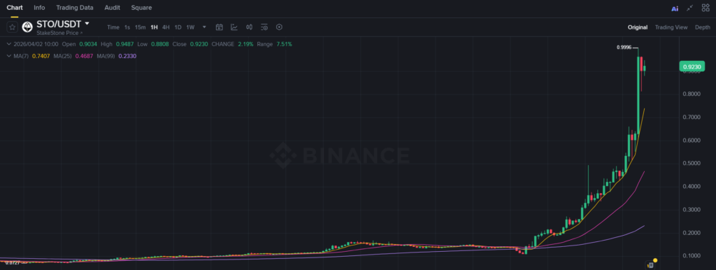 StakeStone (STO), kısa sürede 0,99 dolara çıkarak yatırımcıların dikkatini tamamen üzerine çekti. Piyasadaki bu tablo aslında yalnızca bir fiyat sıçraması değil; balina cüzdan hareketleri, yüksek işlem hacmi ve StakeStone ekosistemindeki yeniliklerin birleşimi ile şekillendi. 24 saatte %227’den fazla değer kazanan token, spekülatif ilgi ve on-chain aktivitenin net yansıması olarak öne çıkıyor.