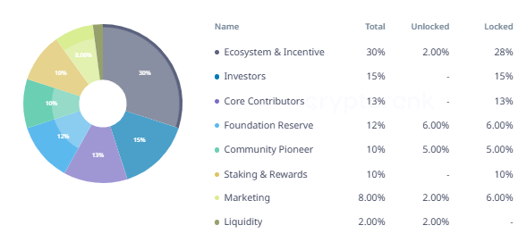 Ekosistem ve Teşvik (%30): TGE’de %6,67 açılır, kalanı 5 yılda doğrusal olarak dağıtılır.