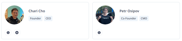 TaleX, Chari Cho (Kurucu ve CEO) ve Petr Osipov (Kurucu Ortak ve CMO) liderliğinde geliştirilmiştir. Ekip, geçmişteki finansman hatalarını kabul ederek daha şeffaf ve adil bir sistem oluşturma taahhüdünde bulunmuştur. TaleX, yaratıcıların ve topluluğun kontrolü elinde tuttuğu bir Web3 ekosistemi inşa etmek için çalışır.