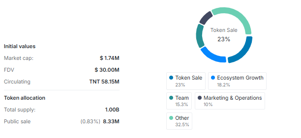 - Toplam arz: 1 milyar TNT