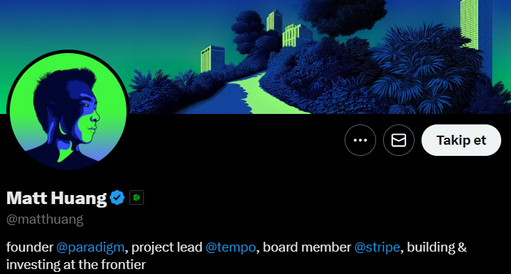 Matt Huang, Paradigm’ın kurucu ortağı ve yönetici direktörü olup, aynı zamanda Stripe’ın yönetim kurulu üyesidir. Ayrıca, Tempo Network adlı ödeme odaklı blok zinciri projesinin CEO’su olarak görev yapmaktadır.