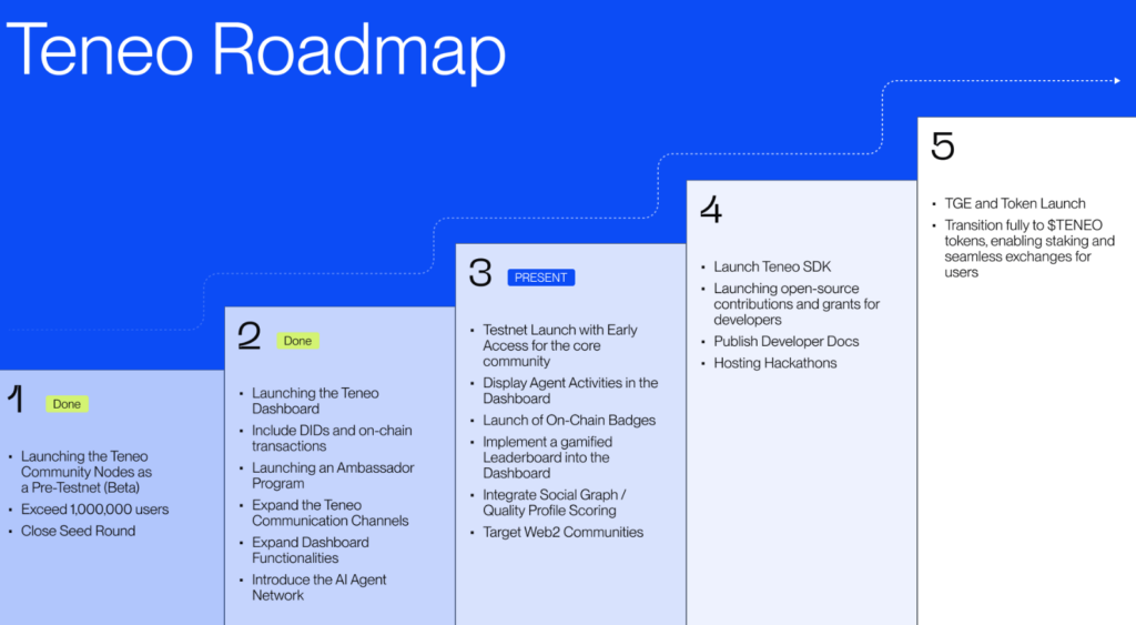 Genel Değerlendirme Teneo, DePIN + AI kesişiminde güçlü bir proje. Kullanıcı odaklı tokenomics (%33+ community rewards), kaliteli yatırımcılar, sağlam execution (SDK ve monetizasyon canlı) ve gerçek kullanım alanları (trading, pazarlama, araştırma) öne çıkıyor. Points farming hala aktif; node çalıştırarak erken katkı sağlamak airdrop potansiyeli taşıyor.