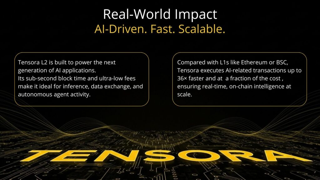 Tensora (TORA), yapay zekâ odaklı bir Layer 2 (L2) çözümü olarak BNB Chain üzerinde OP Stack kullanılarak inşa edilmiş bir blok zinciridir. Tensora, makine zekasını zincir üzerinde birinci sınıf bir varlık hâline getirir ve teşvikli alt ağlar (subnets) aracılığıyla model sağlayıcılarının (madenciler) çıkarım ve veri hizmetleri sunmasını, doğrulayıcıların (validator) kaliteyi puanlamasını ve TORA token ödüllerinin şeffaf şekilde dağıtılmasını sağlar.