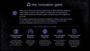 TIG’nin temelinde “Optimize Edilebilir İş Kanıtı” yani OPoW mekanizması bulunur. Bu sistem, klasik proof of work modelinden farklı olarak yalnızca ham hesaplama gücünü değil, aynı zamanda geliştirilen algoritmaların verimliliğini, hızını ve performansını da ödüllendiren yenilikçi bir yapı sunar. Böylece ağdaki rekabet sadece donanım gücüne değil, aynı zamanda zekaya ve optimizasyona dayanır. Bu yaklaşım, daha verimli çözümler üretilmesini teşvik ederken, aynı zamanda gerçek dünya problemlerine yönelik anlamlı katkılar sağlanmasına imkan tanır.