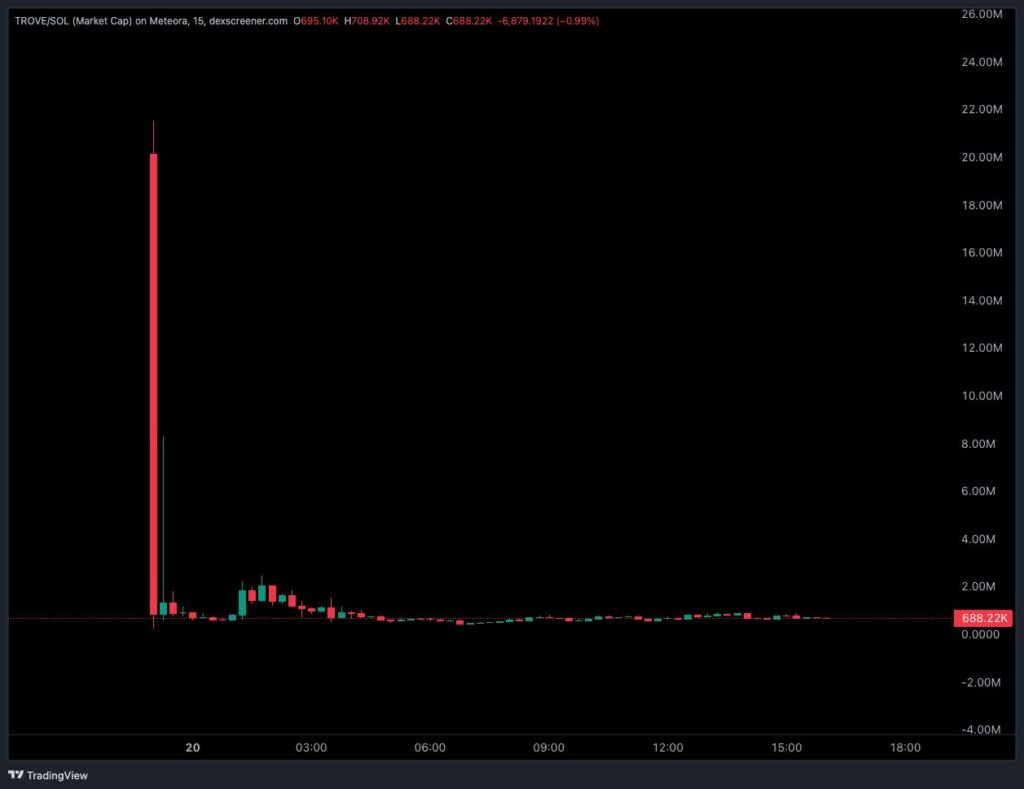 Trove Markets’in yeni çıkardığı token, işlemlerin başlamasından kısa süre sonra sert bir çöküş yaşadı. İlk saatlerde oluşan fiyat yapısı hızla dağıldı ve erken alım yapan yatırımcıların pozisyonları saatler içinde yaklaşık %95 eridi. Piyasada oluşan hasar, yalnızca fiyatla sınırlı kalmadı; proje etrafındaki güven algısı da ciddi biçimde sarsıldı.