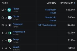 TON tabanlı NFT ve koleksiyon platformu Fragment, son 24 saatte 2,83 milyon dolar gelir elde ederek DefiLlama’nın günlük gelir sıralamasında üst sıralara tırmandı. Bu performans, aynı dönemde 2,25 milyon dolar gelir üreten Hyperliquid’i geride bırakarak NFT odaklı faaliyetlerin ne kadar güçlü bir ivme kazandığını gösteriyor.