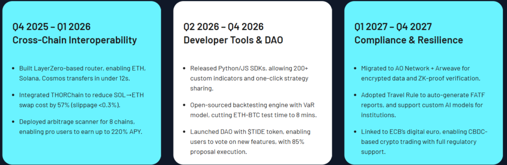 TradeTide uzun vadede DAO tabanlı bir yönetişim modeline geçmeyi planlar.