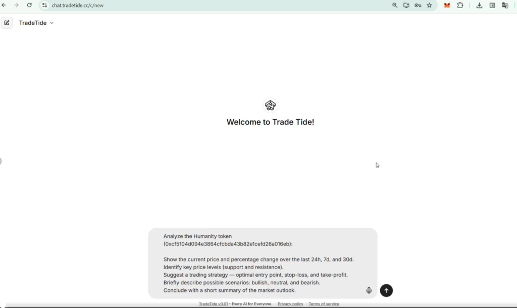 $TTD (TradeTide Token), TradeTide AI platformunun yerel kripto para token’ıdır. TradeTide AI, yapay zeka destekli bir kripto ticaret ajanı olarak çalışır: piyasa trendlerini analiz eder, ticaret stratejileri tasarlar, backtesting yapar ve çapraz zincir (cross-chain) otomatik işlem yürütme sağlar.