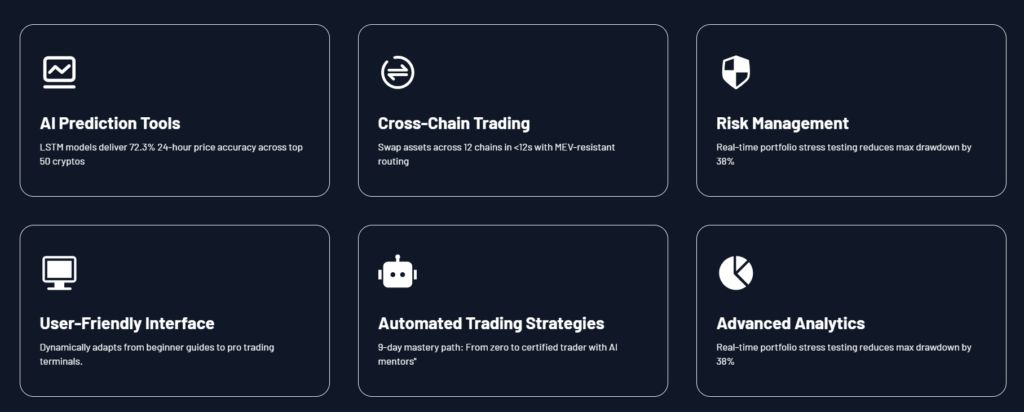 Proje; bilgi aşırı yüklemesi, analitik karmaşıklık, duygusal önyargılar ve işlem parçalanmışlığı (farklı zincir ve borsalar arası) gibi temel sorunları çözmek amacıyla ortaya çıkmıştır. Kullanıcıların doğal dilde sorular sorarak (örneğin: “Bu token’ın fiyatını ne etkiliyor?” veya “Gelecek iki hafta için bir swing stratejisi tasarla ve uygula”) işlem yapabilmesini hedefler.