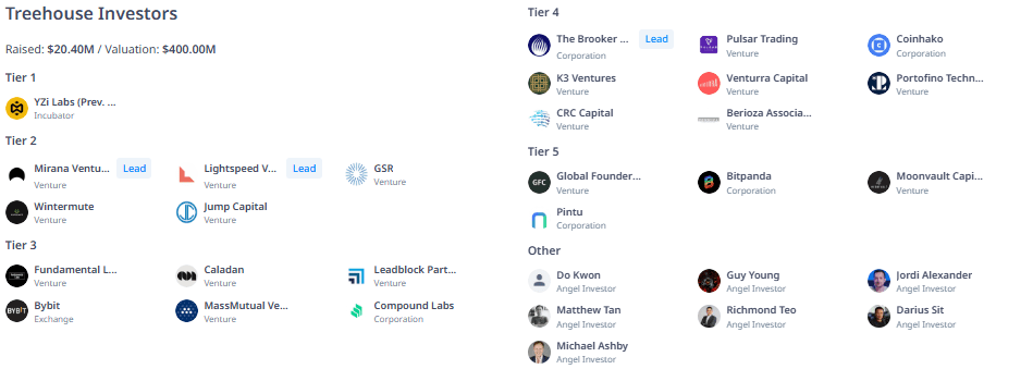 Treehouse, 20.4 milyon dolar toplayarak 400 milyon dolar değerlemeye ulaştı. Yatırımcılar arasında şunlar yer alıyor: