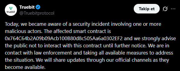 “Saldırı, tek hamlede gerçekleşti ve ciddi bir fon kaybına yol açtı. Truebit ekibi ve güvenlik araştırmacıları olayın detaylarını inceliyor. Yatırımcıların dikkatli olmaları gerekiyor.”