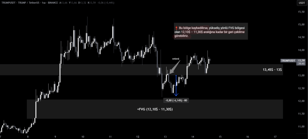 Trump Coin, yaşadığı bu kısa vadeli düşüş sonrasında direnç seviyesini yeniden test ederek 14$ seviyelerine kadar yükseldi. Teknik analizlere göre, eğer bu seviye yukarı yönlü kırılırsa bir sonraki hedef olarak 15,50$ seviyesi gündeme gelebilir. Bu da kısa vadede yüzde bazında 13% civarında bir artış potansiyeline işaret ediyor.