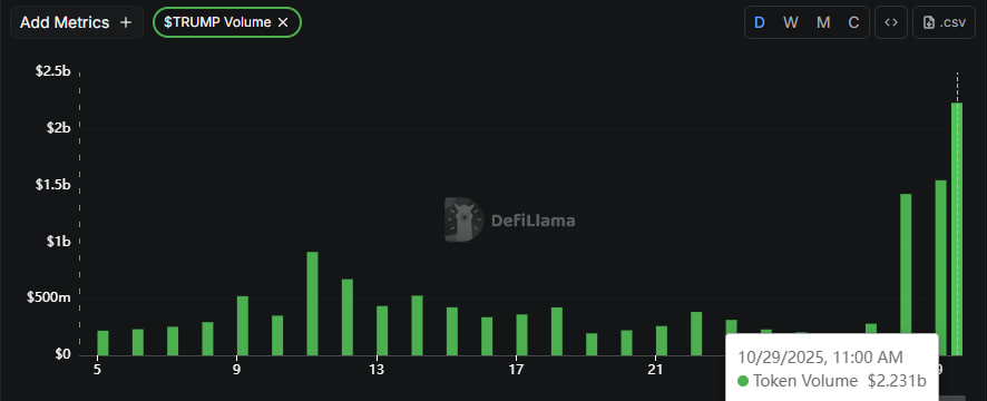 Bugünkü işlem hacminde de belirgin bir sıçrama yaşandı. TRUMP’ın günlük işlem hacmi 2,31 milyar dolara ulaşarak son haftaların en yüksek seviyesini gördü. Bu hacim artışı, hem alım yönlü momentumun güçlendiğine hem de kısa vadeli trader’ların piyasaya yeniden girdiğine işaret ediyor. Yüksek hacim, fiyat hareketinin arkasında güçlü bir likidite desteği bulunduğunu ve yükselişin daha geniş bir katılım tarafından desteklendiğini doğruluyor.