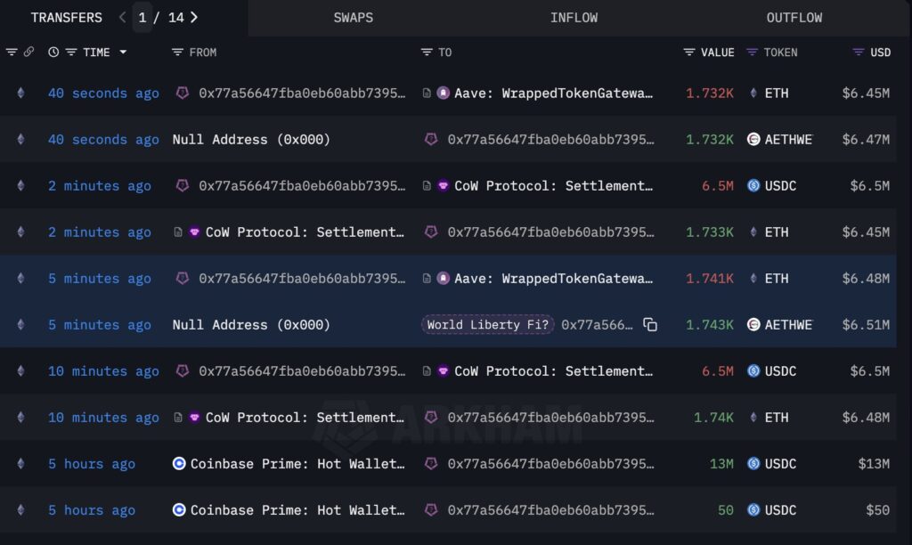 World Liberty Financial, 22 Temmuz Salı günü USDC stablecoin ile toplam değeri 13 milyon dolar olan 3.473 ETH satın aldı. Lookonchain ve Arkham Intelligence verilerine göre yapılan bu işlem, ortalama 3.743 dolar seviyesinden birkaç farklı cüzdan aracılığıyla gerçekleşti. Kurumsal yatırımcı ilgisinin arttığı bir dönemde gelen bu hamle, World Liberty’nin Ethereum stratejisindeki kararlılığı gösteriyor.