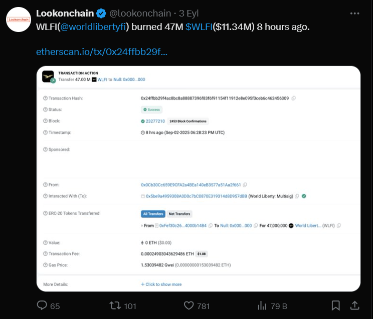 Yükselişten sonra yaşanan düşüşte balina satışları ve ön satışların açılması etkili oldu. Büyük cüzdanlar ve ön satış katılımcıları token’ları toplu şekilde sattı. Bu hareket, yatırımcılar arasında satış baskısı oluşturdu. Analistler, fiyat düşüşünün zirveden %60 kayba işaret ettiğini belirtiyor. Ayrıca World Liberty Financial ekibi, dolaşımdaki arzın %0,19’una denk gelen 47 milyon token yaktı ve çöküşü durdurmaya çalıştı.