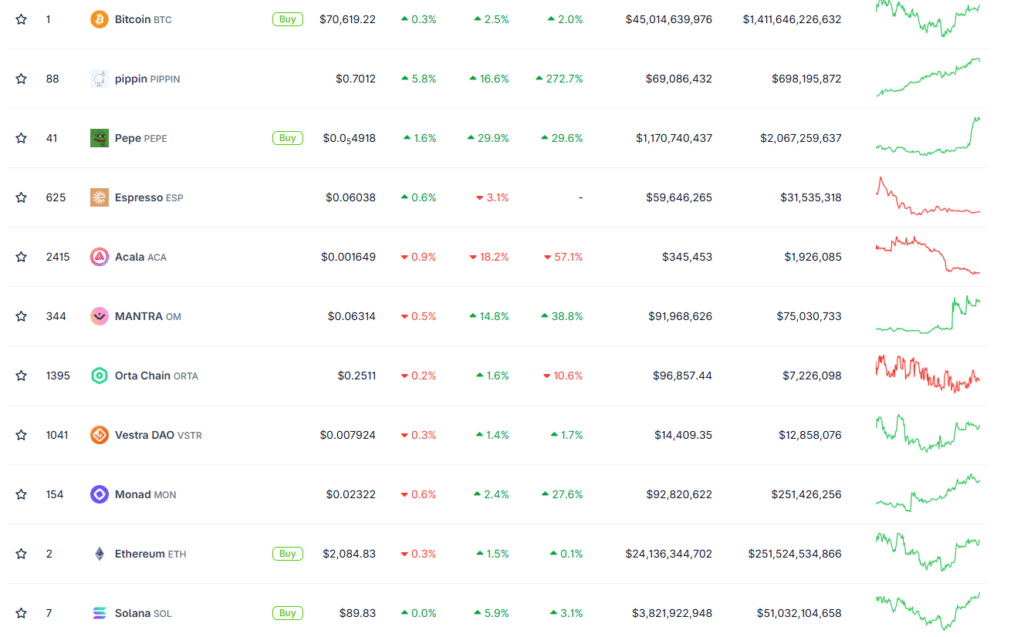 Benzer şekilde Pippin (PIPPIN) son 7 günde %272,7 yükseliş göstererek dikkat çekti. 0,7012 dolardan işlem gören Pippin’in piyasa değeri 698 milyon dolar civarında bulunuyor. Bu hızlı artış, yatırımcıların yeni fırsat arayışında olduğunu ortaya koyuyor.