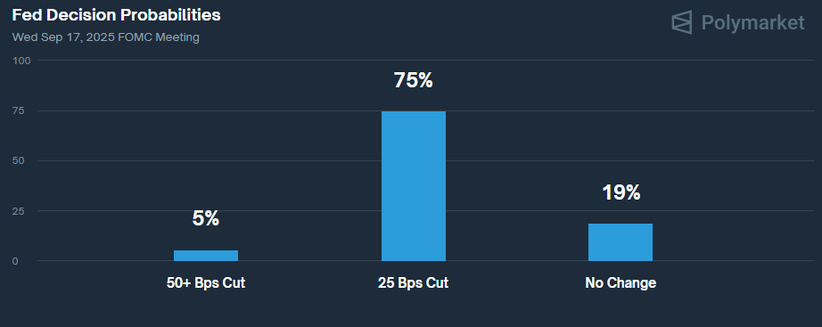 Polymarket verilerine göre, 17 Eylül 2025 FOMC toplantısı için faiz indirimi olasılıkları şu şekilde: