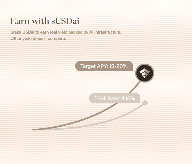 sUSDai ise USDai’nin stake edilmiş ve getiri sağlayan versiyonudur. Bu token; ABD Hazine bonolarına ek olarak, tokenize edilmiş yapay zeka altyapı kredileriyle (GPU teminatlı krediler) desteklenir. sUSDai sahipleri, ek risk karşılığında getiri elde eder. Ancak bu varlıklar stablecoin’lere kıyasla daha düşük likiditeye sahip olduğundan, geri çekim işlemleri belirli bekleme sürelerine tabidir.