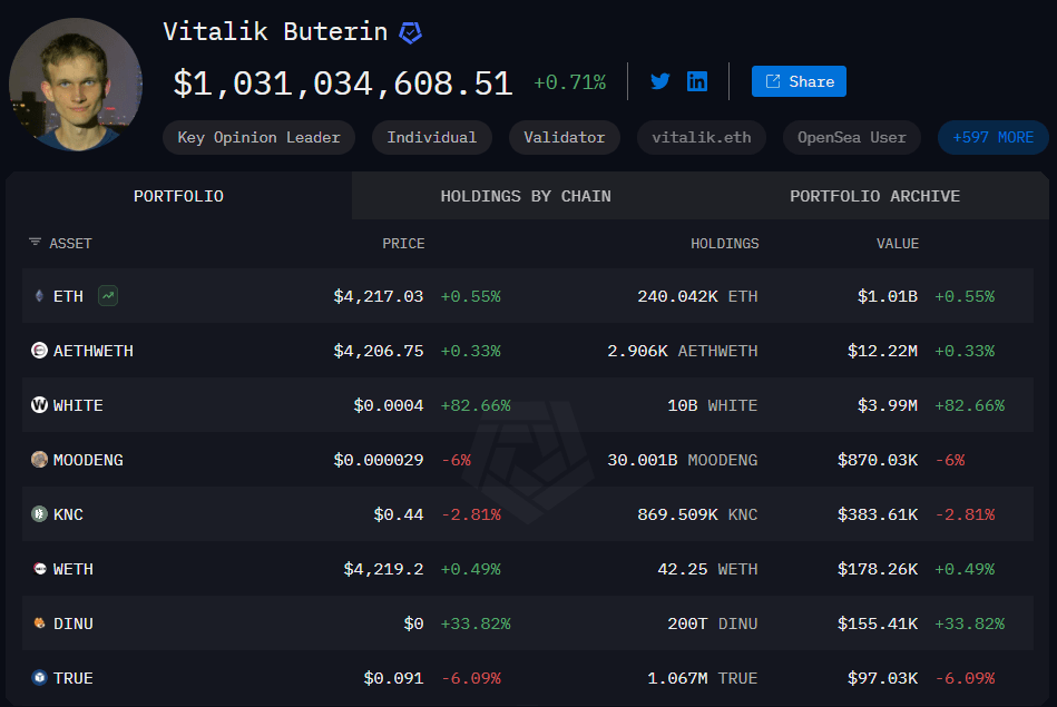 Buterin’in servetinin büyük bölümü, Ethereum’un madencilik öncesi tahsisattan elde ettiği ETH varlıklarından oluşuyor. Bu varlıklar, fiyat yükselişleriyle birlikte servetini doğrudan etkiliyor. Ayrıca Buterin, kripto dünyasında hayırsever kimliğiyle de biliniyor.
