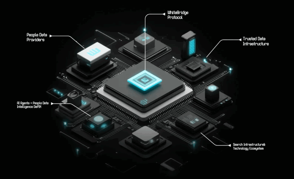 WhiteBridge AI Agents Network, merkezi olmayan insan-veri istihbarat platformu olarak çalışır.