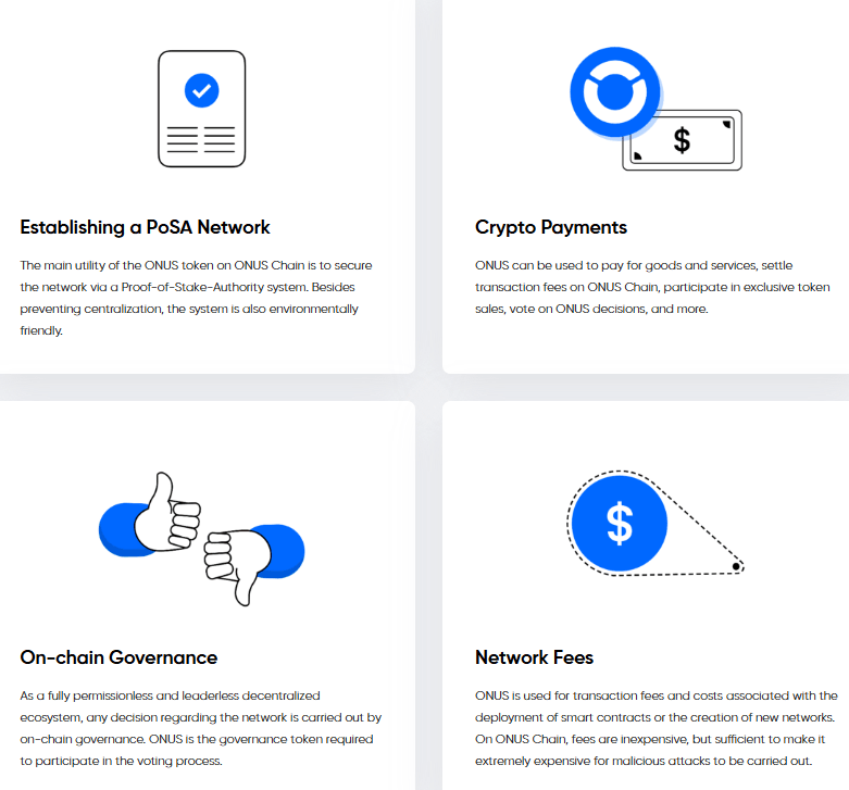 ONUS Chain’in temel amacı, kullanıcı dostu, düşük maliyetli ve yüksek performanslı bir Web3 ve DeFi platformu sunmaktır.ONUS Coin, ağı güvence altına almak, yönetişimde kullanılmak ve işlemlerde düşük ücret sağlamak için tasarlanmıştır.