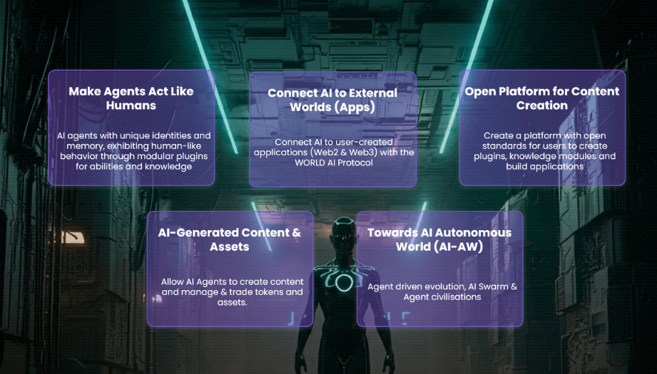 Projenin temelinde Agent VM teknolojisi ve WORLD3 AI Protokolü bulunuyor. Bu teknolojik altyapı, ajanlara hiyerarşik planlama, 7/24 sürekli yürütme, çok zincirli bağlantı ve Web2/Web3 platformlar arası otomasyon yetenekleri sağlıyor.