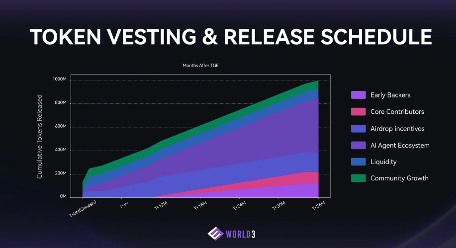 • Yapay Zeka Ajan Ekosistemi: TGE’den 1 ay sonra (T+1M) başlamak üzere 36 ay boyunca doğrusal olarak serbest bırakılır.