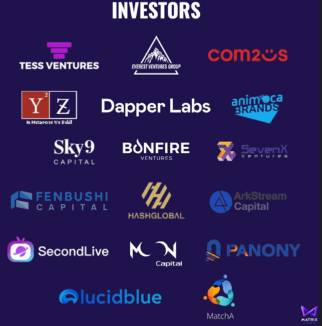 TESS Ventures, Everest Ventures Group, com2us, YZ, Dapper Labs, Animoca Brands, Sky9 Capital, Bonfire Ventures, SevenX Ventures, Fenbushi Capital, HashGlobal, ArkStream Capital, SecondLive, MXN Capital, Panony, Lucidblue, MatchA.