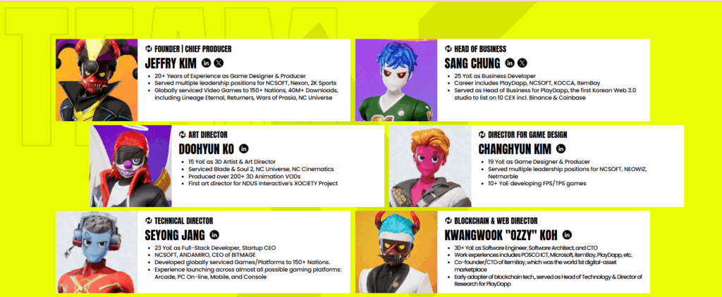 Bu ekibin ortalama 10+ yıllık oyun geliştirme tecrübesi bulunmakta olup, bu sayede hem kaliteli oyun tasarımı hem de yenilikçi Web3 entegrasyonları başarıyla sunulmaktadır.