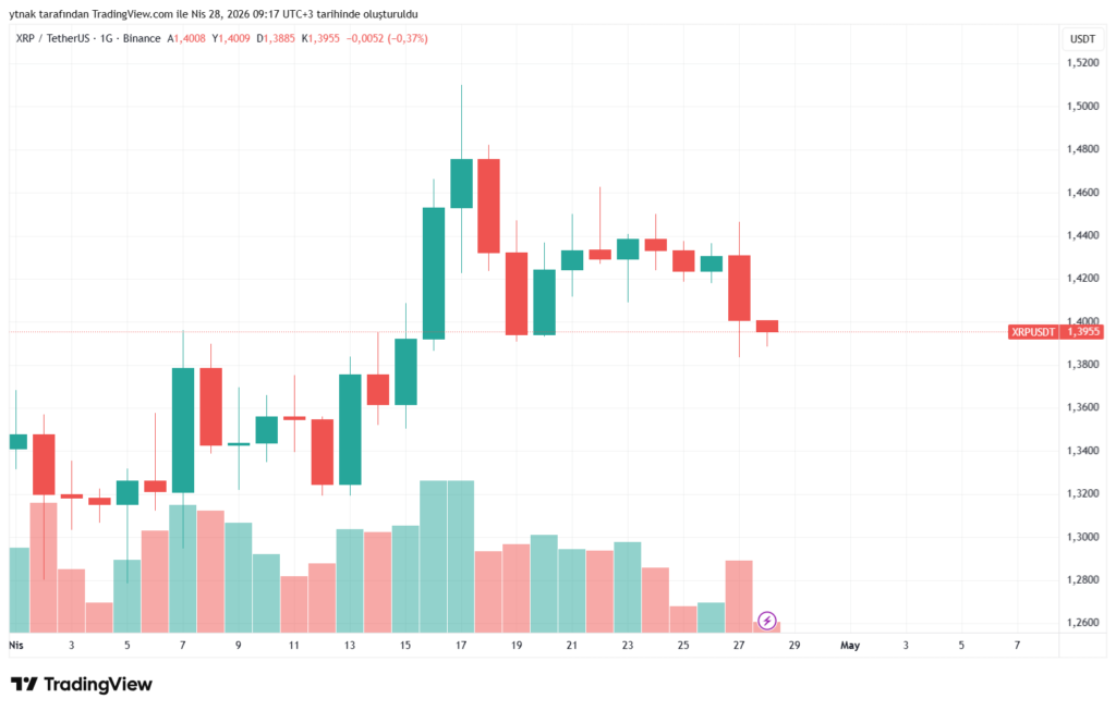 Mevcut tabloda XRP, 1.40 dolar altında kaldığı sürece baskı altında kalmaya devam ediyor. Kısa süreli tepki yükselişleri görülse de bu hareketler henüz trend dönüşü için yeterli değil.