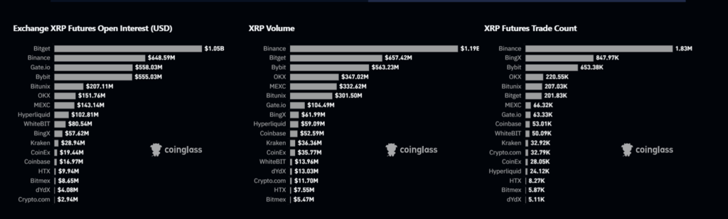 Günlük grafikte XRP, ayı formasyonu olan simetrik üçgen oluşturuyor. Bu, fiyatın %40 düşüşle 1.25 dolara inebileceğini işaret ediyor. Ayrıca, ağdaki işlem hacmi azalıyor.