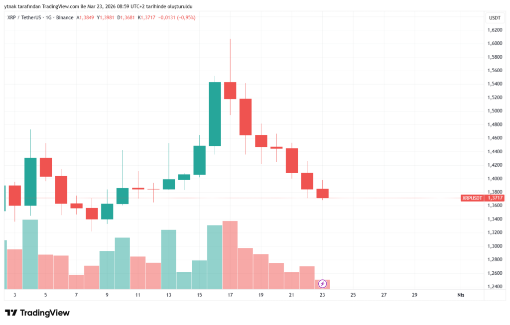 1,38 doların altında kalıcı bir kırılım gerçekleşirse XRP fiyatı 1,30–1,32 dolar destek bölgesine doğru hızlanabilir.