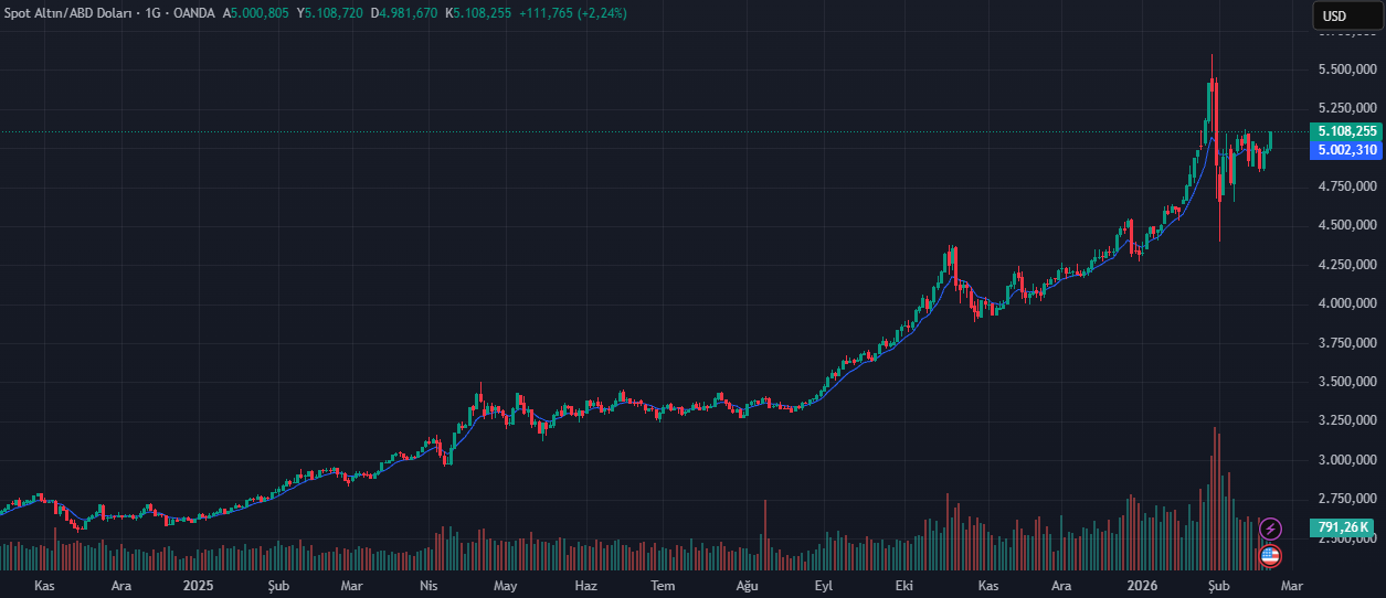 Artan ekonomik ve politik belirsizlik ortamında ons altın günlük bazda yüzde 2,24 değer kazanarak 5.108 dolar seviyesine yükseldi. Güvenli liman talebinin belirginleştiği görülürken, orta vadeli belirsizliklerin altın yatırımcısını caydırmadığı değerlendiriliyor.