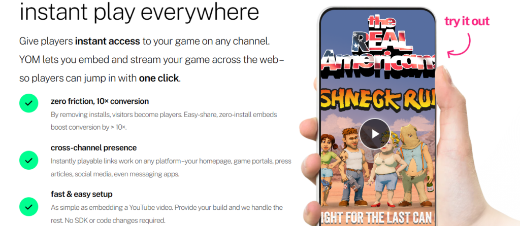 Entegrasyon tarafında YOM, Unreal Engine 5 SDK ve gömme (embed) seçenekleri ile stüdyoların oyunlarını web sitelerine, uygulamalara veya sosyal platformlara kolayca taşımalarını sağlıyor. Ayrıca, mevcut GPU’ları kullanması sayesinde enerji ve donanım israfını azaltarak çevreye duyarlı bir çözüm sunuyor. Performans açısından da etkileyici sonuçlar ortaya koyuyor; örneğin Roughneck Rumble oyununda günlük aktif kullanıcı sayısı %1316, kullanıcı tutma oranı %54 arttı.