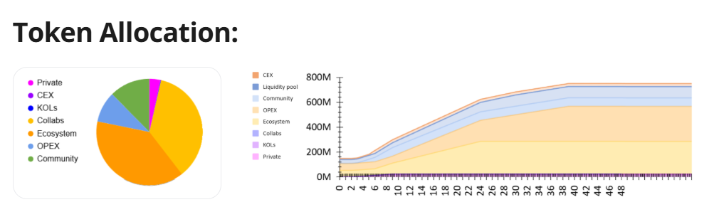 OPEX, toplam arzın %37,5’ini oluşturuyor; %20’si TGE’de açıldı ve kalan kısmı 30 ay boyunca lineer olarak kilitleniyor.
