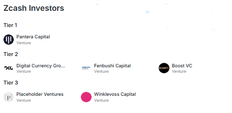 Zcash, erken dönemden itibaren güçlü yatırımcıların ilgisini çekmiştir. Bu yatırımcılar, projenin uzun vadeli gizlilik vizyonuna destek vermektedir.