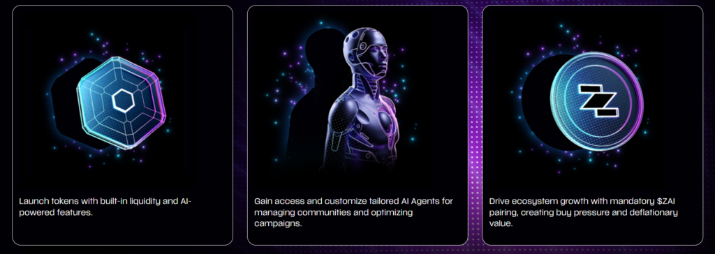 Zesh AI Launchpad & Marketplace: AI ajanlarının tokenize edilip alınıp satılabildiği ve yeni projelerin $ZAI eşleşmesiyle (pairing) çıkış yaptığı merkezdir.