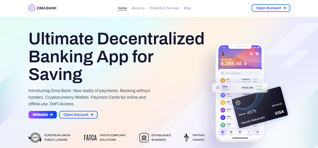 Platform; SEPA bağlantılı altyapısı, Avrupa Birliği Kamu Lisansı (EUPL) sertifikasyonu ve FATCA ile FINTRAC uyumlu yapısı sayesinde hem regülasyonlara uyumlu hem de sınır ötesi kullanım için optimize edilmiş bir çözüm sunmayı amaçlar. ZimaBank’ın temel vizyonu, kripto ve fiat dünyası arasındaki geçişi kullanıcılar için mümkün olduğunca sade ve erişilebilir hâle getirmektir.